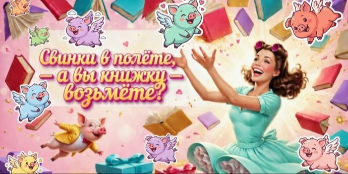 🐷📖 Легенда о Книгопаде 18+ Сегодня День летающих свинок. А знаете, почему они летают? Давным-давно книжки жили на облаках. Стояли на небесных полках, листали сами себя и скучали без читателей....