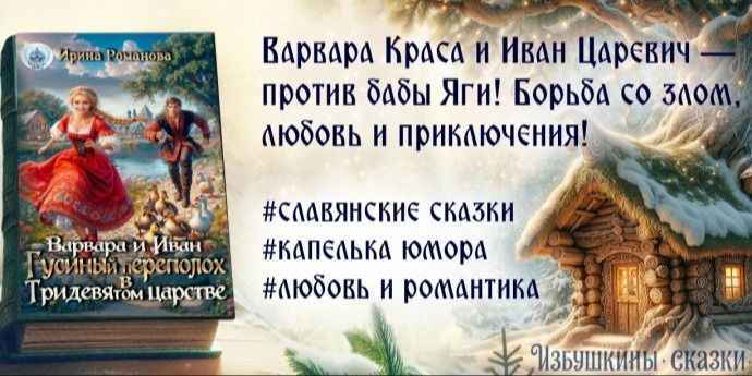 Я, Варвара Краса, и представить не могла, что моя жизнь так круто изменится. Злая Яга украла у моих родителей волшебных гусей, и теперь я должна спасти их. Со мной отправляется Иван Царевич — он вызвался помочь мне пройти через лес, полный опасностей. Что ждет нас в этом путешествии? Стоит ли мне довериться Ивану, чтобы пройти все испытания? А главное, смогу ли я сделать правильный выбор между верностью и несметным богатством, которое обещает Яга?