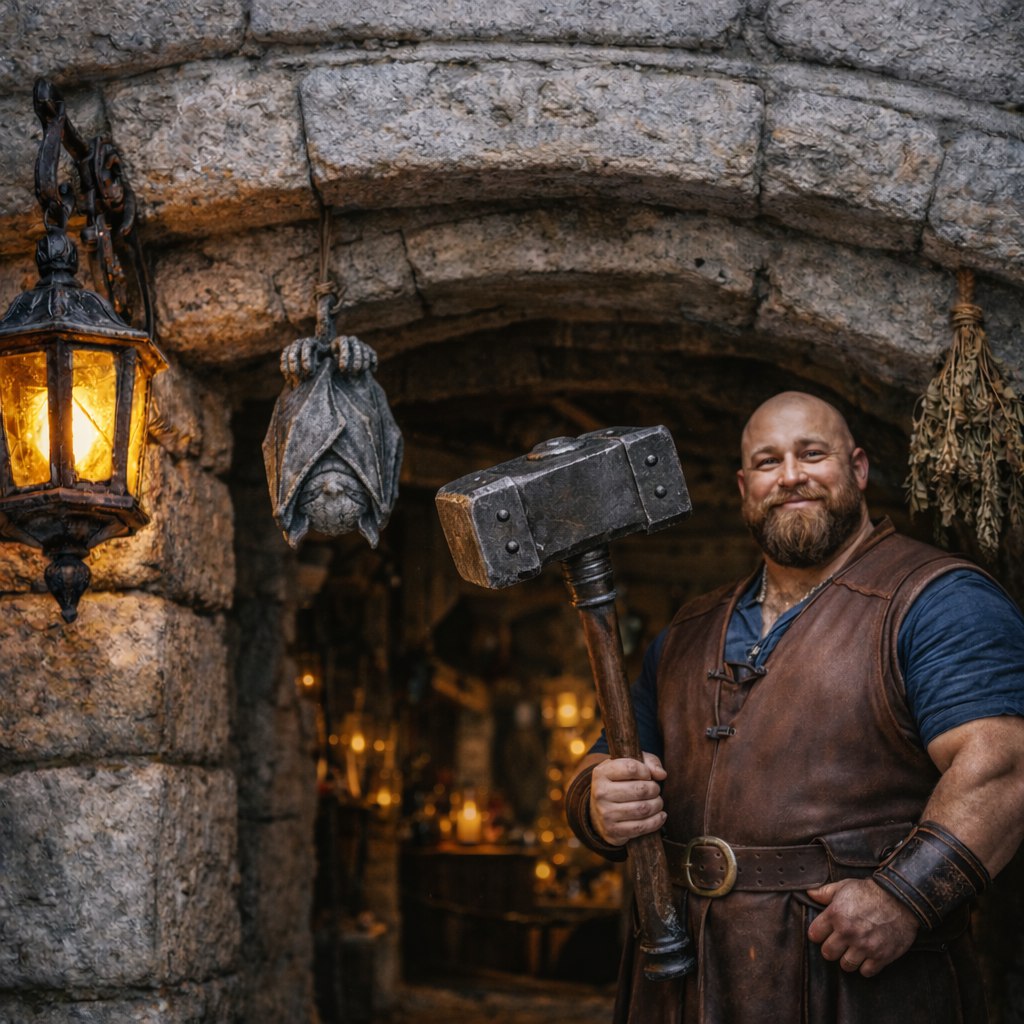 Гаррет — бывший городской стражник, человек-гора, который ищет не подвигов, а простой, честной работы, чтобы кормить семью. Его сила — не в магии, а в молчаливой, несокрушимой надёжности. Он не задаёт лишних вопросов, но всегда оказывается там, где нужен. Он стал тем фундаментом, на котором держится покой таверны.