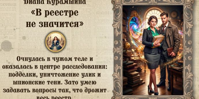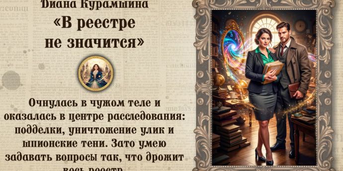 ТОЛЬКО ДЛЯ ЧИТАТЕЛЕЙ СТАРШЕ 16+ ЛЕТ Дорогие мои! Добро пожаловать в детективную новинку Дианы Курамшиной В реестре не значится Аннотация: Наша героиня Ника очнулась в чужом те...