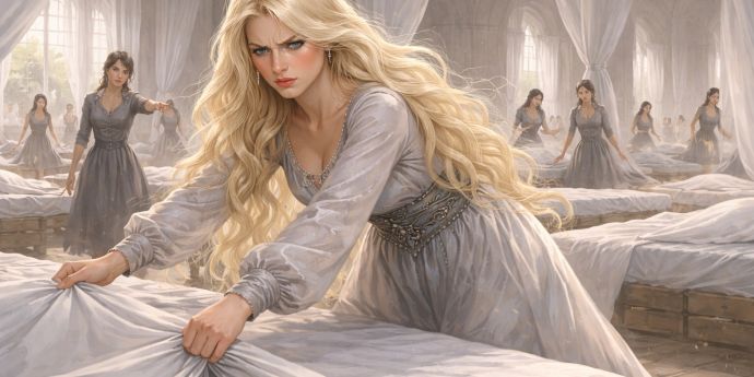 Ненавистную кровать наша героиня уже заправила.
