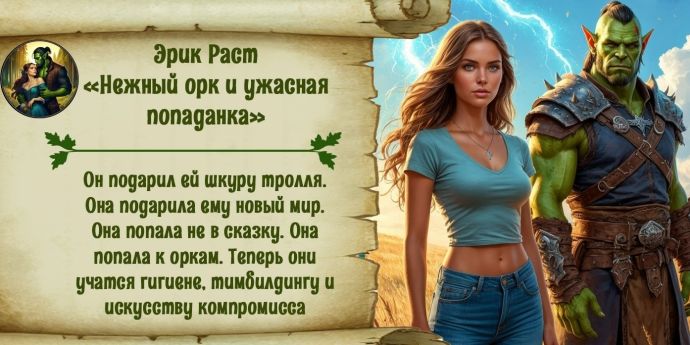 - Во-первых, — чётко сказала она, глядя на орка, — я не дичь. Во-вторых, ваше рычание распугивает рыбу. В-третьих, — она сделала паузу, переводя дух, — вы не поздоровались!