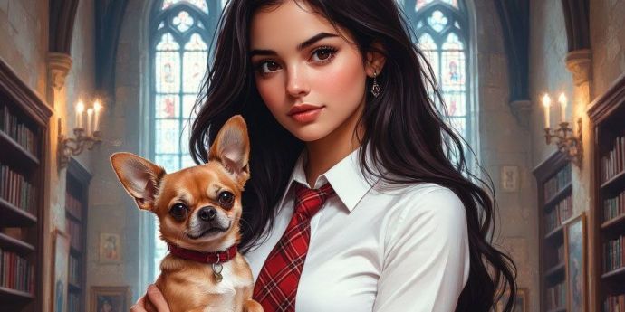 подарок Адриану: двухкилограммовый кусачий монстр чихуахуа, которую спасла из клетки Маша, теперь девушка и её верный фамильяр, готовый дать отпор кому угодно.