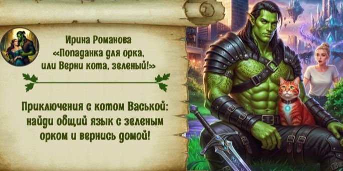 В мире, где обыденность переплетается с магией, прогулка с котом Васькой превращается для меня в невероятное приключение. Он исчезает, а я оказываюсь в руках загадочного зеленого орка, который утверждает, что кот — ключ к другому миру. Заговоривший Васька обещает мне возвращение домой, но что скрывается за словами орка? Смогу ли я разгадать тайну кота и вернуть все на свои места? Или же найду среди всего этого нечто большее и обрету настоящую любовь, которая изменит мою жизнь навсегда?..