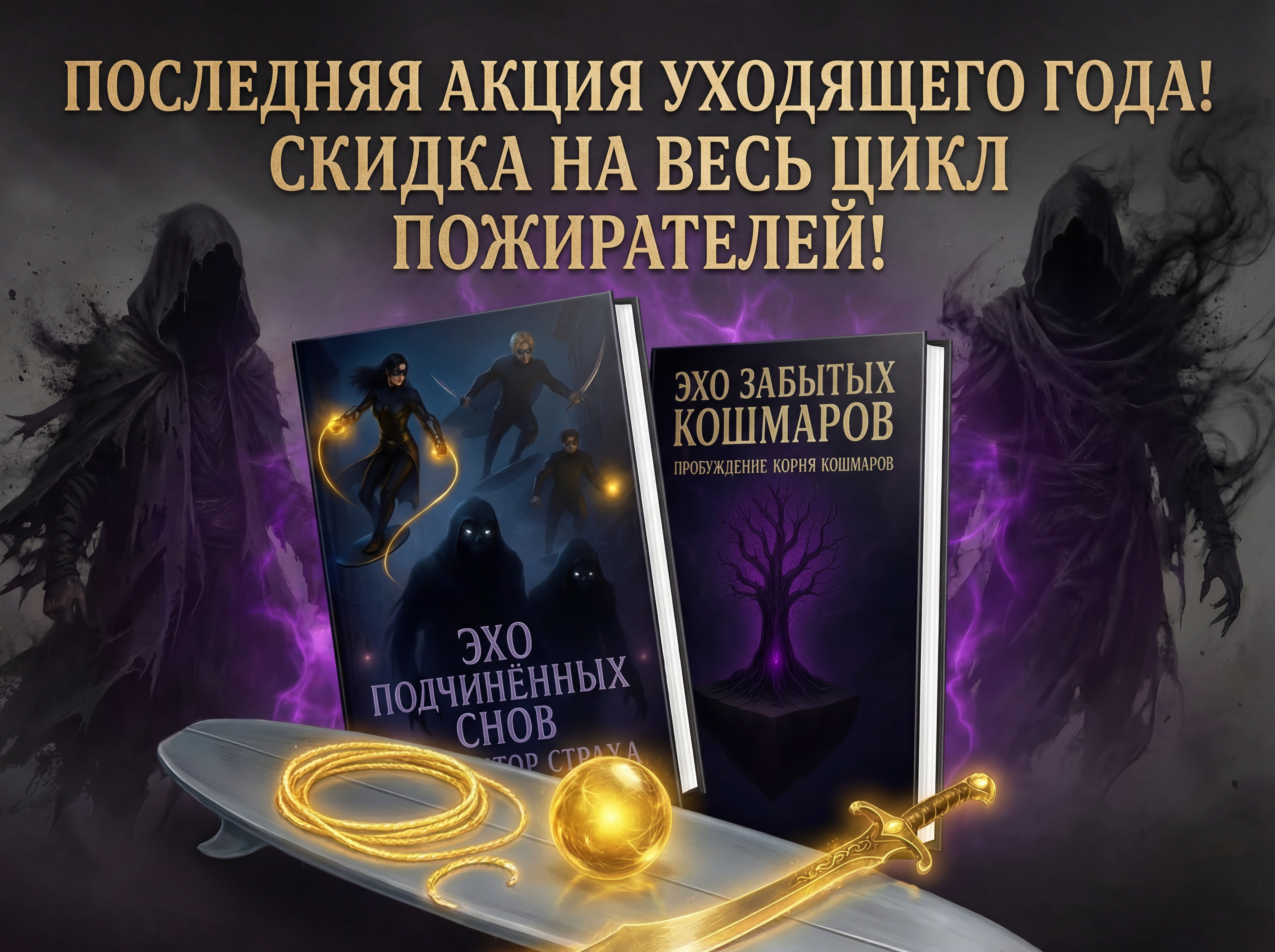 Дорогие мои и любимые читатели! Поздравляю вас всех с наступающим Новым годом и дарю вам скидку на свой цикл Пожиратели Кошмаров и Защитники Сновидений!