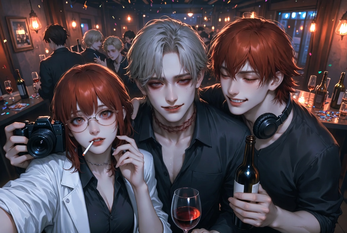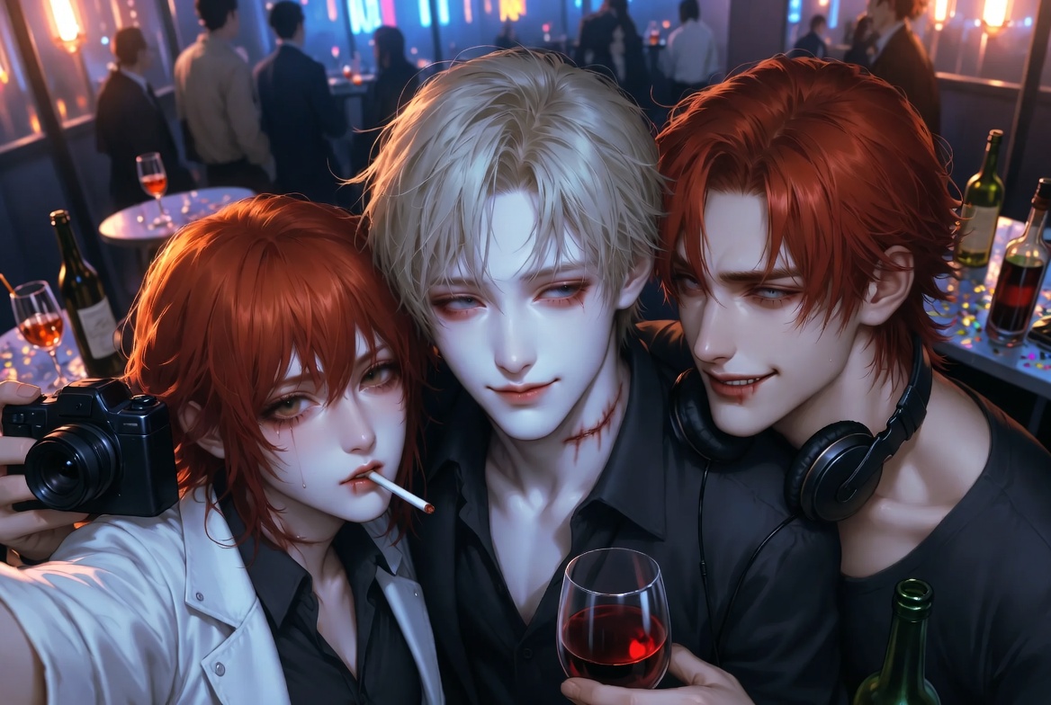 Троица бармалеев на момент начала истории (да, всё начнётся с корпоративчика): Элис, Люций и Габриель.