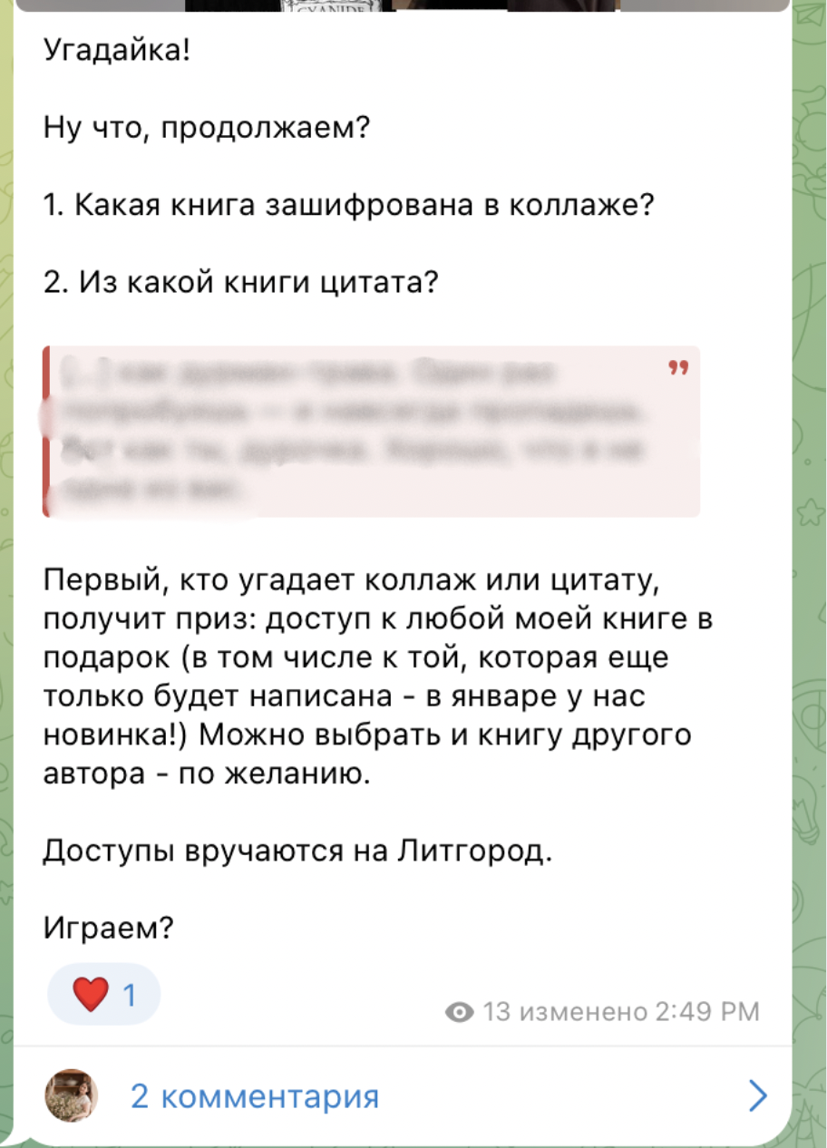 Сейчас и на протяжении каникул в моем Телеграм-канале мы играем в угадайку: нужно угадать из какой книги коллаж или цитата.