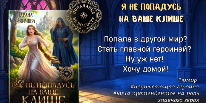 Аннотация: Я – студентка педагогического вуза, увлекаюсь книгами о попаданках, но никак не ожидала, что сама попаду в другой мир. Что? Мне нужно стать главной героиней? Нет-нет, я просчитаю все ваши клише и обойду их. Хочу поскорее попасть обратно домой, но для этого нужно найти того, кто сможет меня туда перенести…