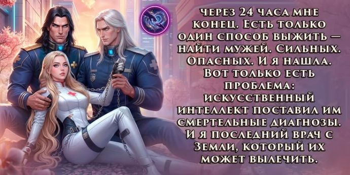 Меня похитили. И первое, что я узнала — через 24 часа мне конец. Моя планета уничтожена. Домой не вернуться. А сама я всего лишь «ресурс» для размножения и экспериментов. Есть только один способ выжить — найти мужей. Сильных. Опасных. Готовых заявить на меня права. И я нашла. Вот только есть проблема: искусственный интеллект поставил им смертельные диагнозы. Им осталось жить еще меньше, чем мне.