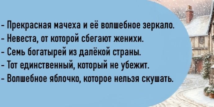Вас ждут 13 волшебных историй, совершенно разных и в то же время немного похожих: в каждой вы встретите злую мачеху с волшебным зеркалом, отравленное яблоко, героиню, чем-то похожую на Белоснежку, и героя, который, наверное, напомнит вам героя русских сказок. Мы, авторы, ждем вас с нетерпением!
