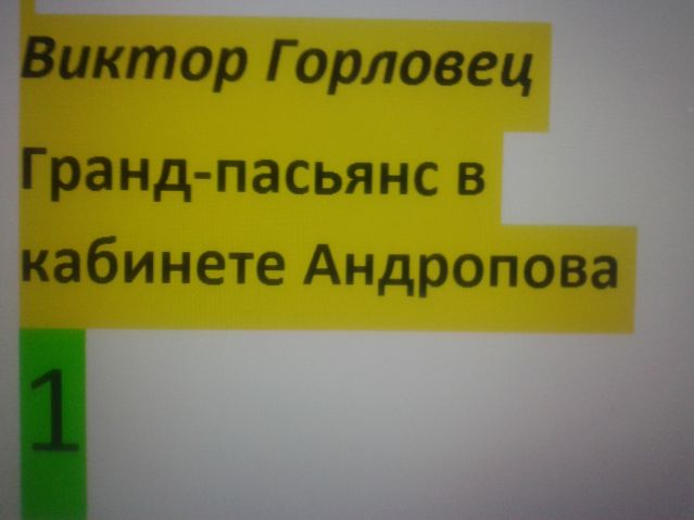 Роман из двух книг “Гранд-пасьянс в кабинете Андропова" полностью опубликован здесь – https://www.litprichal.ru/users/gp436/ либо https://www.next-portal.ru/users/grand-passianse/, ДОСТУП БЕСПЛАТНЫЙ.