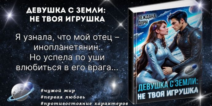 Дорогие читатели! Приглашаю вас в фантастическую новинку (16+) Нежданы Дорн Девушка с Земли: не твоя игрушка Аннотация: Я узнала, что мой отец - инопланетянин. И успела по уши вл...