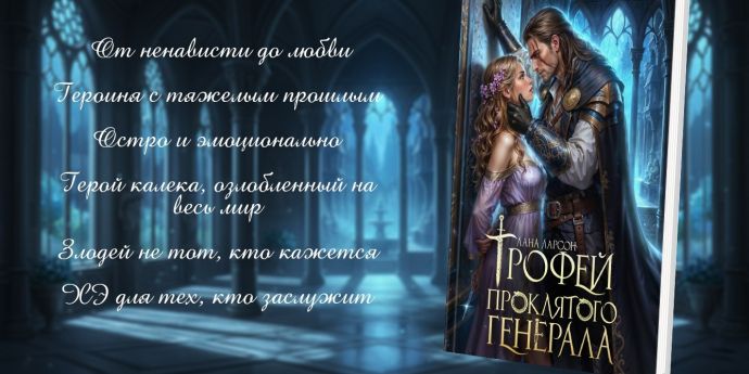 Дорогие читатели! У Ланы Ларсон стартовала эмоциональная новинка Трофей проклятого генерала для читателей старше 16+ Аннотация: Генерал Магнар дра’Карион забрал меня прямо со свадьбы. Не ...